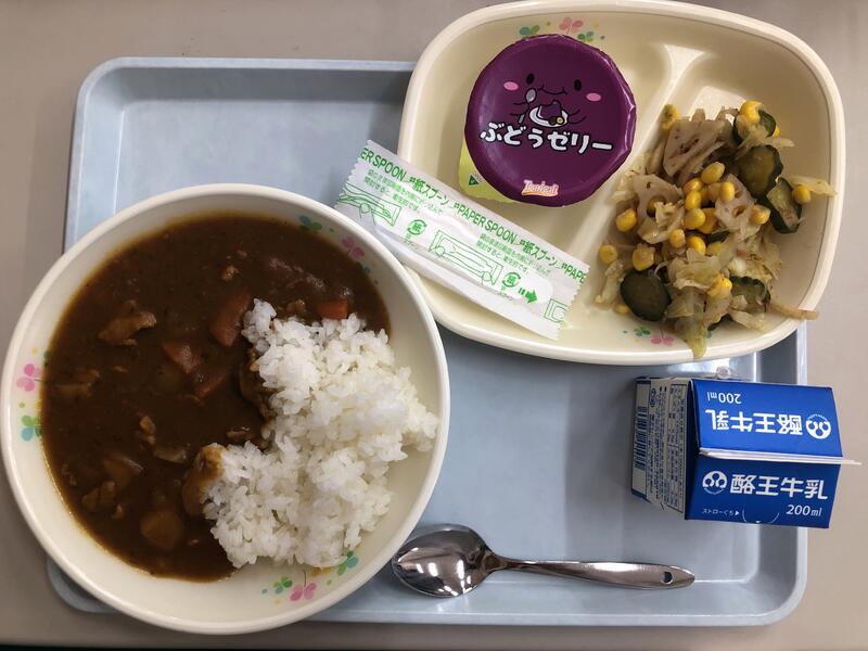 ポークカレーライス 牛乳 シャキシャキサラダ ぶどうゼリー