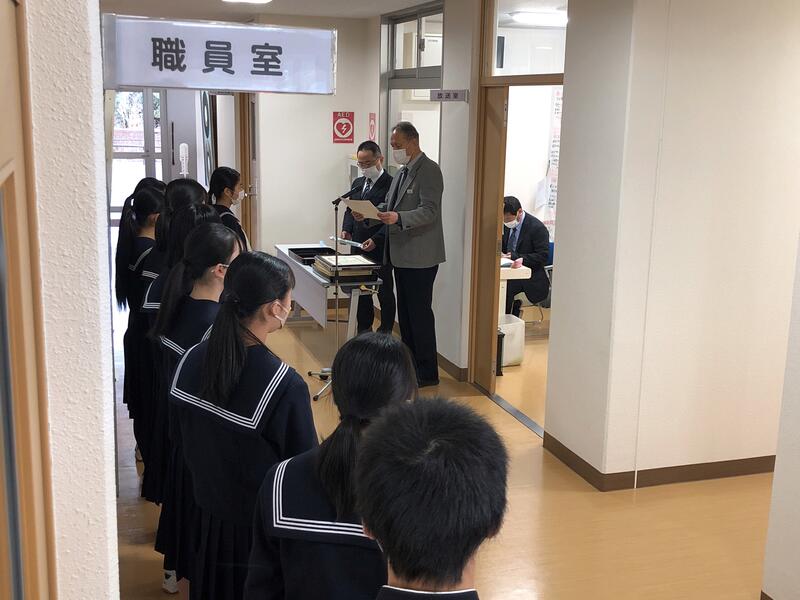2時間目に行われた第2学期終業式では、全校生が素晴らしい態度と姿勢で式に臨めていました。また、各学年の代表生徒による「2学期を振り返って」の中でも、学習も部活動も、そして進路実現に向けても頑張ったとの反省がありました!