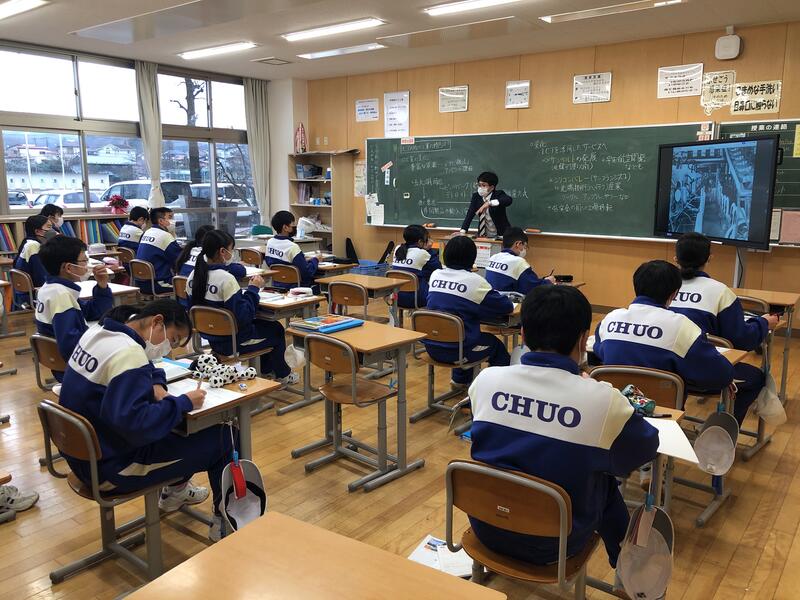 社会科の授業でした。顔を上げて真剣に先生の話を聞いていました!