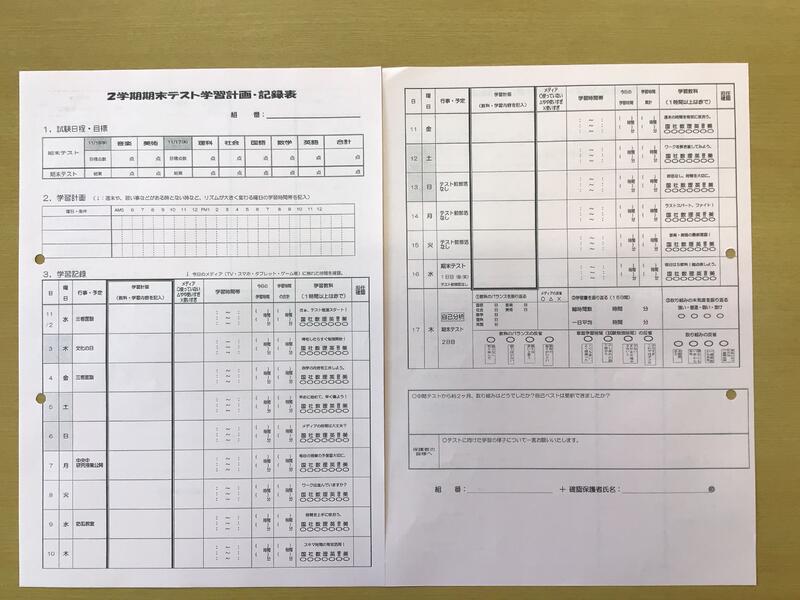 生徒のみなさんは、期末テストに向けて計画をしっかり立てましょう。そして、時間を有効に使って学習をすすめましょう。