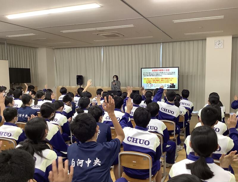 今日の5時間目に1学年では防犯教室、2学年で防災教室、3学年でスクールカウンセラー講話がありました。