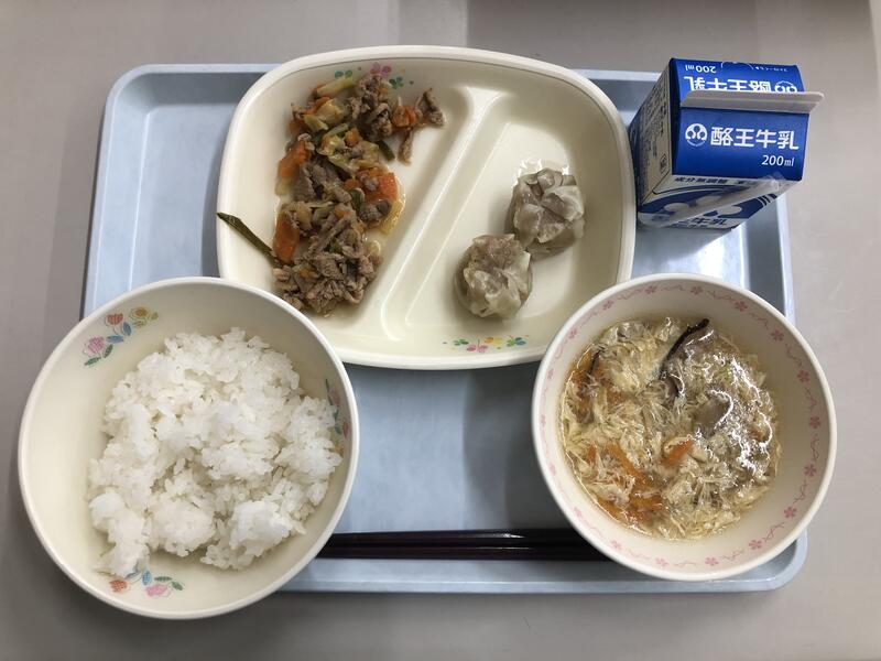 ごはん 牛乳 シューマイ ホイコーロー 中華スープ