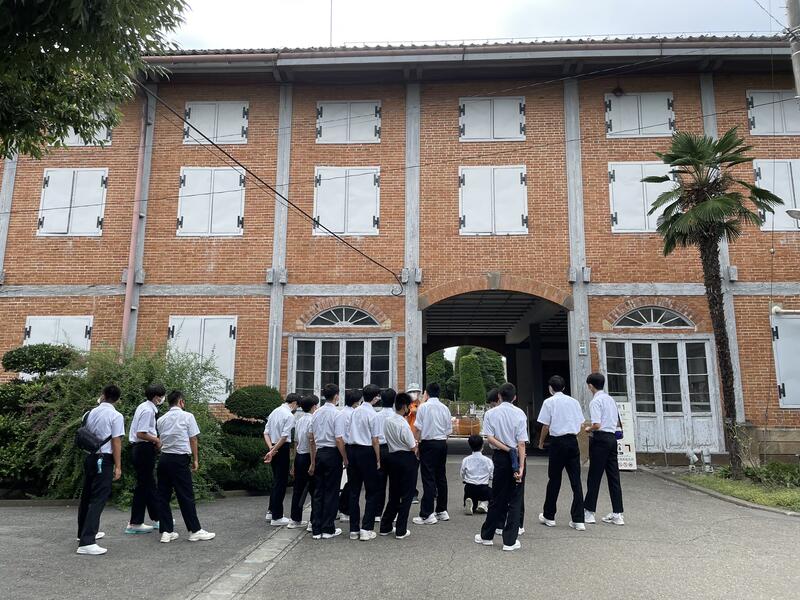 ついに最後の見学地の富岡製糸場に到着し、見学しています。社会科の授業で学んだ施設を実際に見ることができる貴重な体験です!とても勉強にもなったのではないでしょうか!
