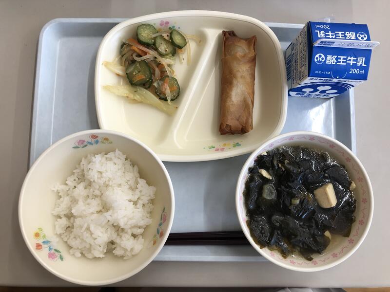 ごはん 牛乳 春巻き 中華サラダ わかめスープ