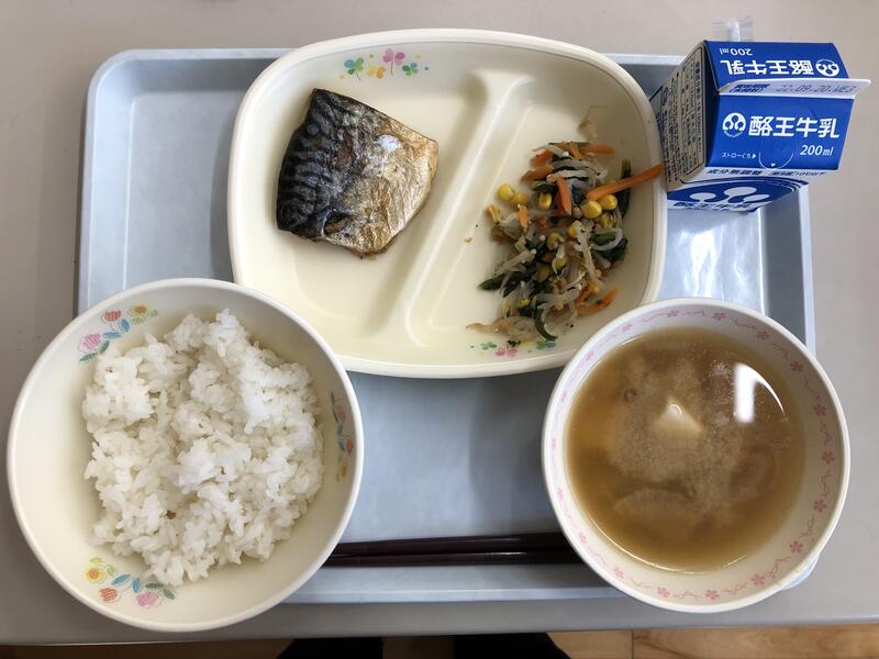 ごはん 牛乳 サバの塩焼き いろどりあえ さつま汁