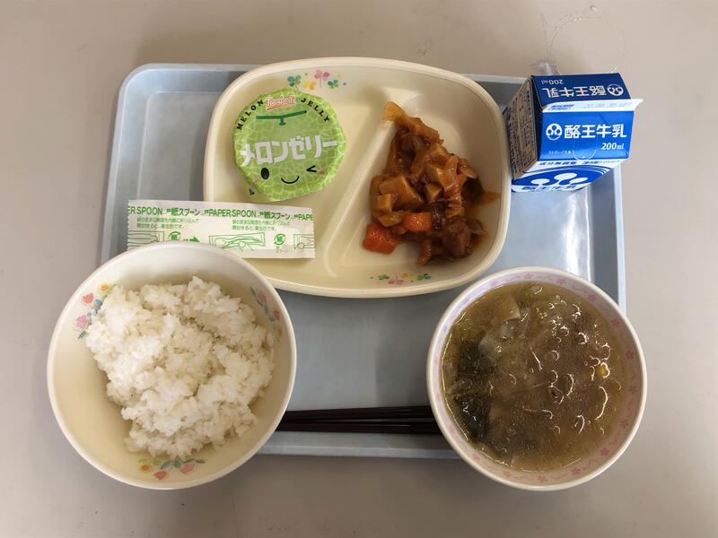 ごはん 牛乳 酢豚 春雨スープ メロンゼリー