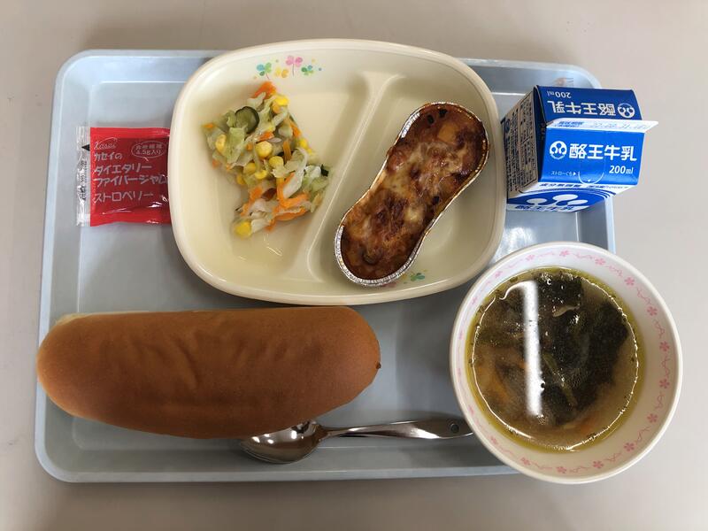 コッペパン 牛乳 いちごジャム ポテトミートグラタン コールスローサラダ 野菜スープ