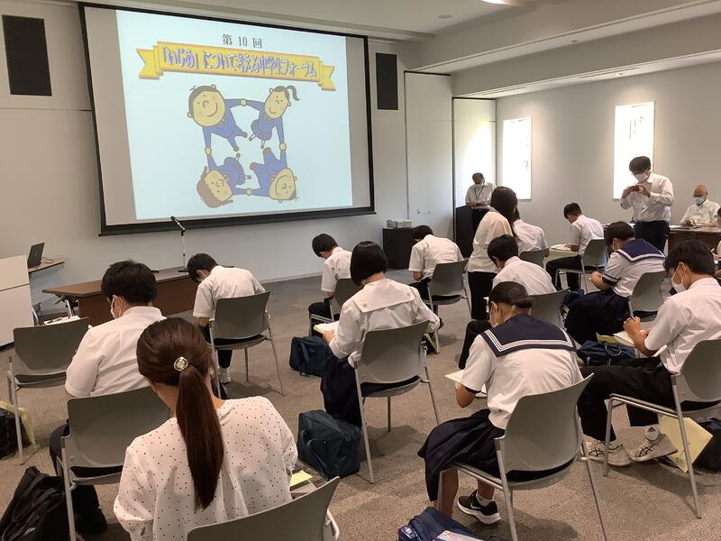 今日は白河市立図書館で「いじめ」について考える中学生フォーラムが行われ、本校から生徒を代表して生徒会本部の生徒2名が参加しました。
