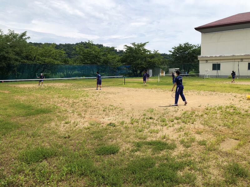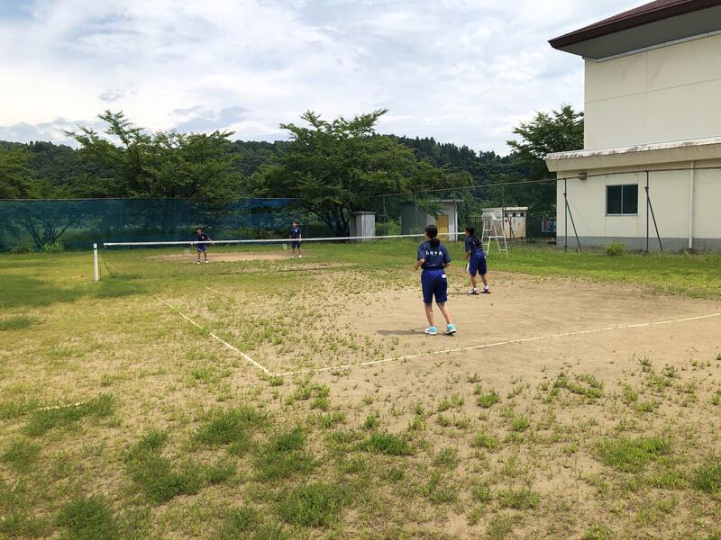 中田のテニスグラウンドでは、男女テニス部が活動をおこなっていました。