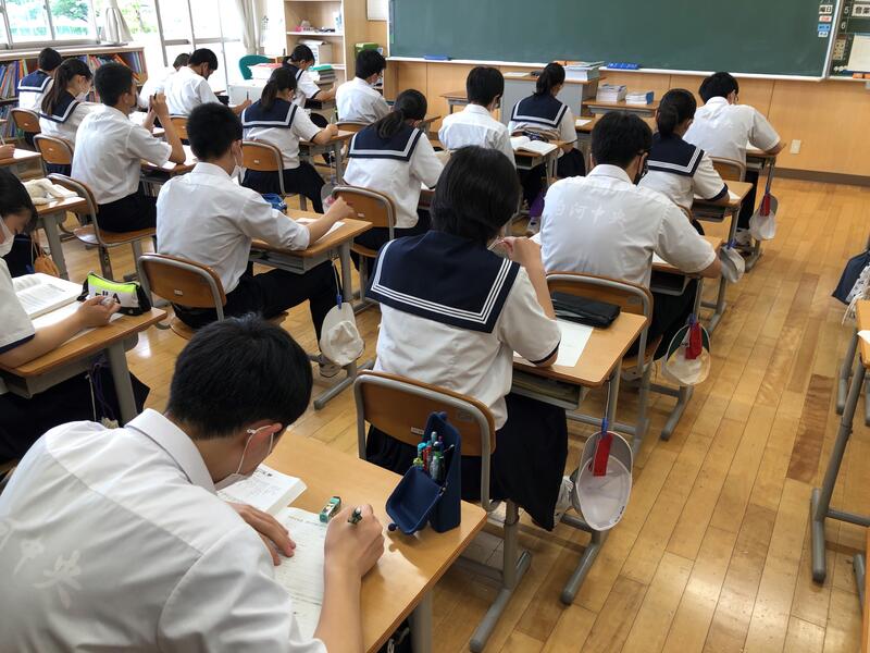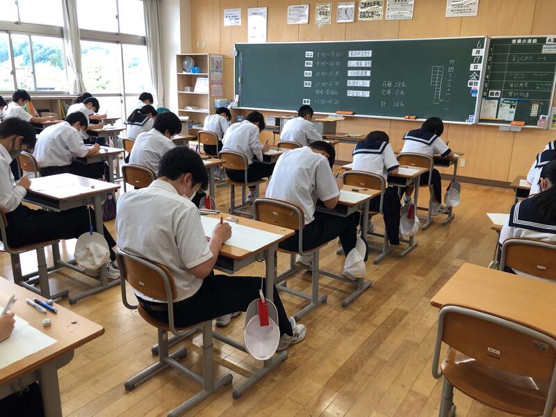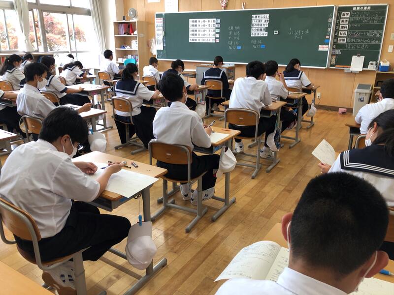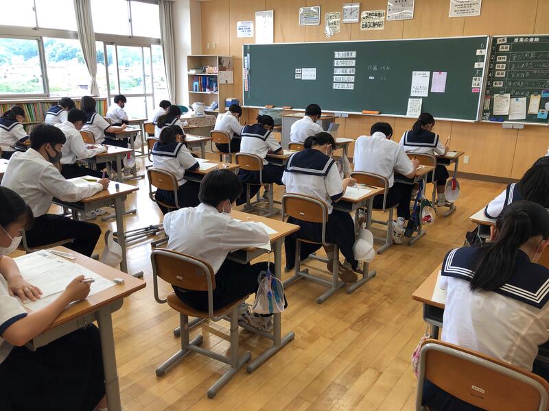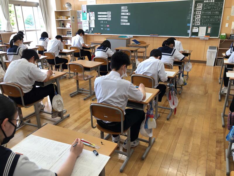 中体連明けの1週間、一生懸命勉強には取り組めたでしょうか?その勉強の成果を発揮しようと、どの学年も真剣な表情でテストに臨んでいました!