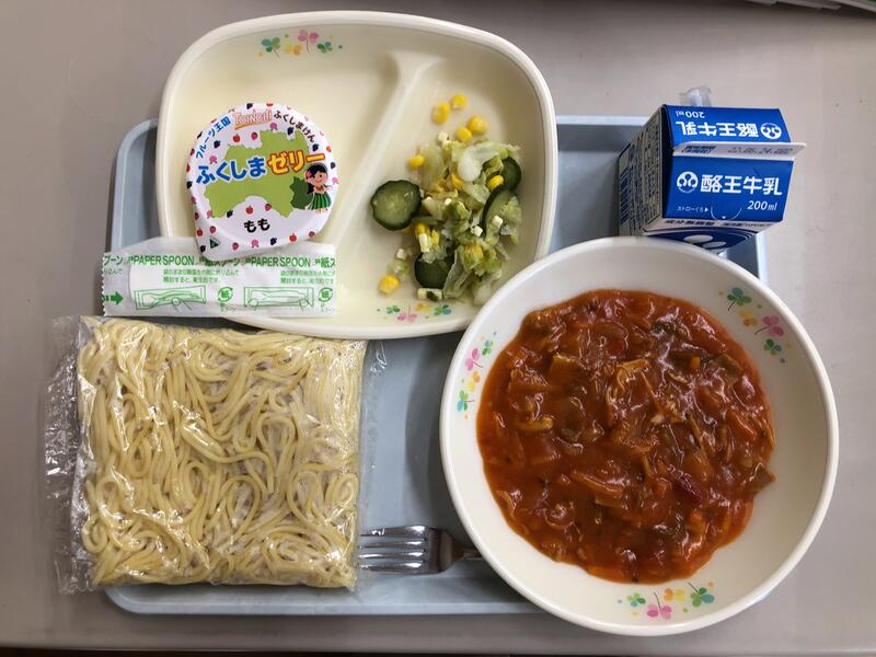 スパゲティナポリタン 牛乳 チーズサラダ 福島県産ももゼリー