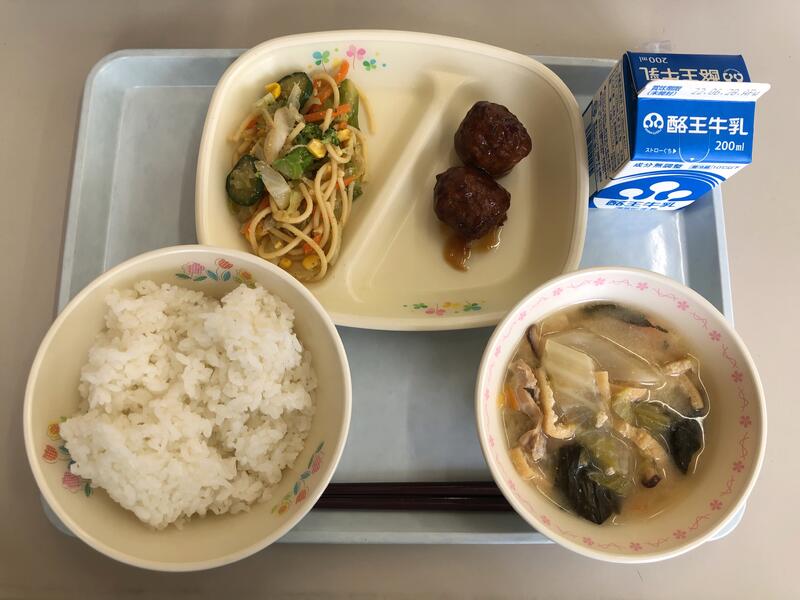 ごはん 牛乳 肉だんご サラスパ すいとん汁