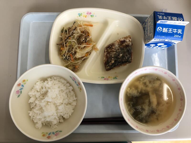 ごはん 牛乳 さわらのサラサ揚げ 五目ビーフン 玉ねぎのみそ汁