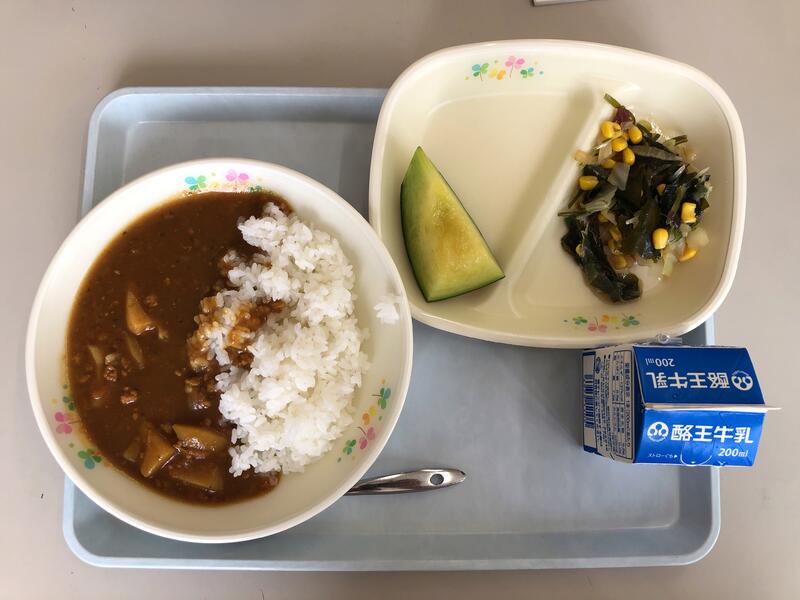 キーマカレーライス 牛乳 海藻サラダ メロン