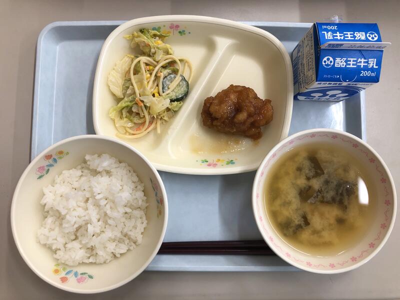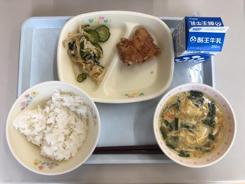 ごはん 牛乳 鶏肉のからあげ もやしの香味あえ 中華コーンスープ