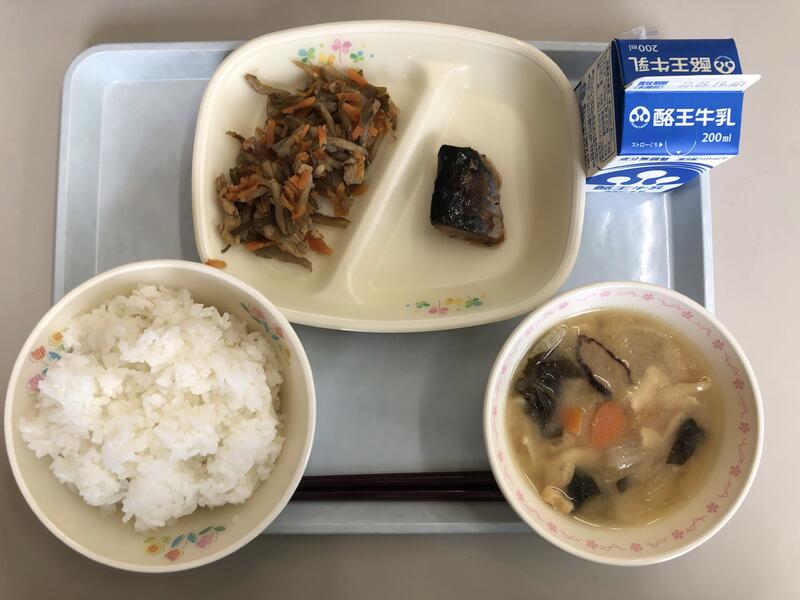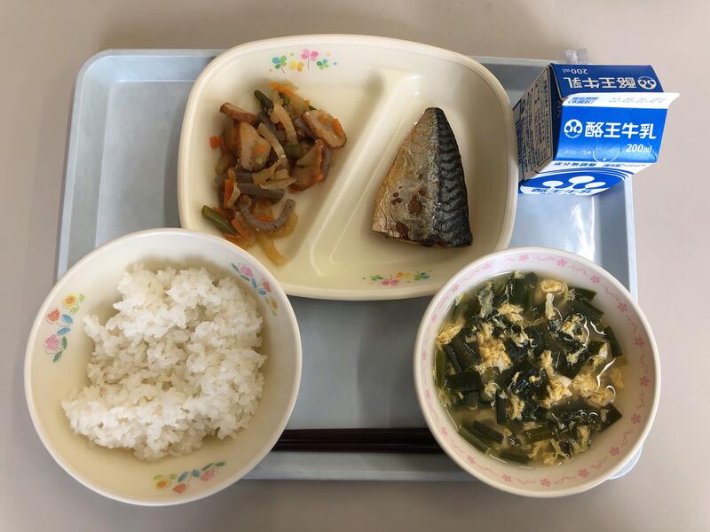 ごはん 牛乳 サバの塩焼き 大根のきんぴら にらたま汁