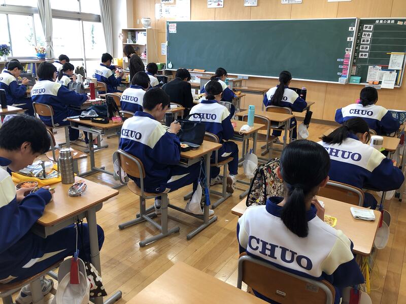 今日は、食育・健康デーということで、お弁当持参日でした。水曜日には食育指導ということで、食について学びましたが、その学びを生かしてお弁当を自分で作ってきた生徒もいました。また、自分で作ることでいつもお家の人に作ってもらっていることへの感謝の言葉も聞こえてきました。この食育・健康デーを通して、生徒の食生活がさらに豊かになるよう、今後も実践してまいりたいと思います。