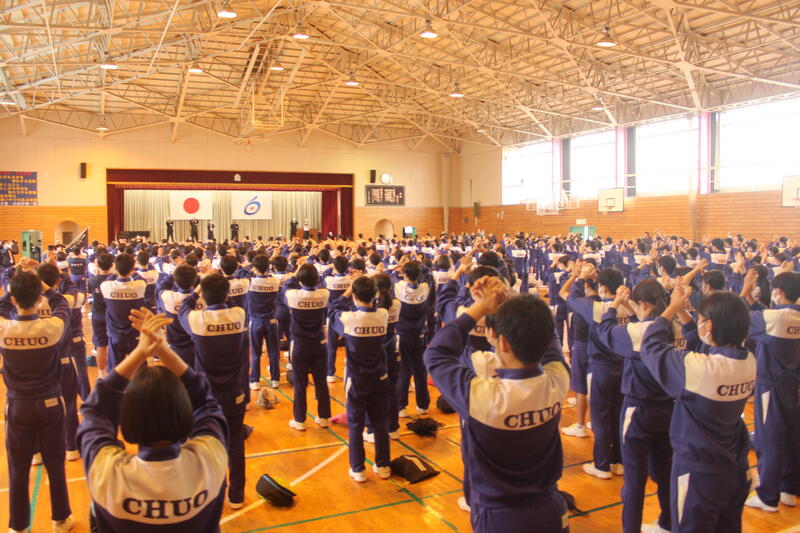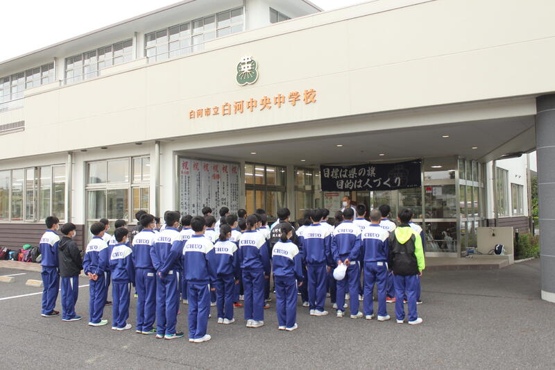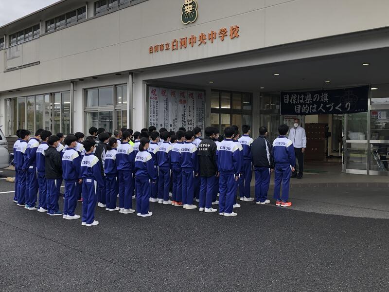 先ほど、県南陸上大会を戦い抜いた陸上部が帰校しました。それぞれの種目で一生懸命戦う姿、戦っている仲間を全力で応援する姿が見られ、中央中学校のチームとしての力の強さを改めて感じることができた大会でした。大会を見ることができない学校に残った生徒たちからの心の中でのエールも力になったのではないでしょうか?
