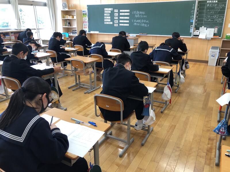 今日は3学年で学力診断テストが行われました。1・2年生の内容から出題されましたが、春休みやこの1ヶ月半の間にどれだけ復習や対策をしてきたでしょうか?自己採点は下校してからとなりましたが、思うような点数は取れたでしょうか?