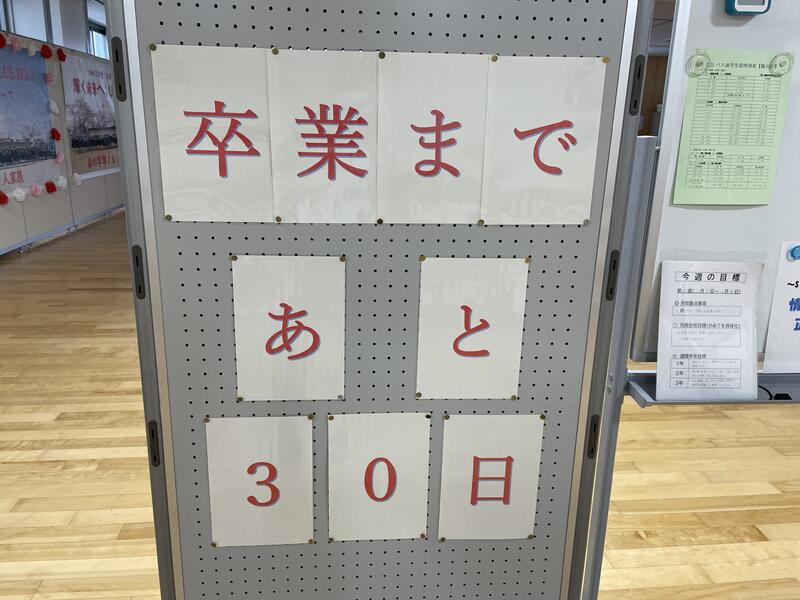 3年生のフロアでは卒業式までのカウントダウンカレンダーが掲示されています。