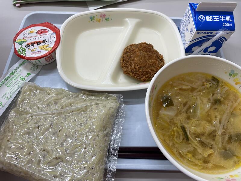 みそバターコーンラーメン 牛乳 かぼちゃチーズフライ ミルクプリン