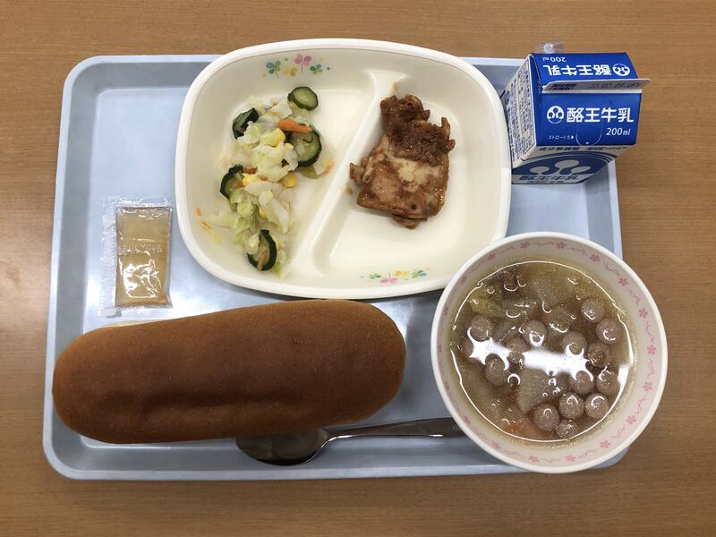 コッペパン 牛乳 りんごジャム タンドリーチキン コールスローサラダ ポトフ