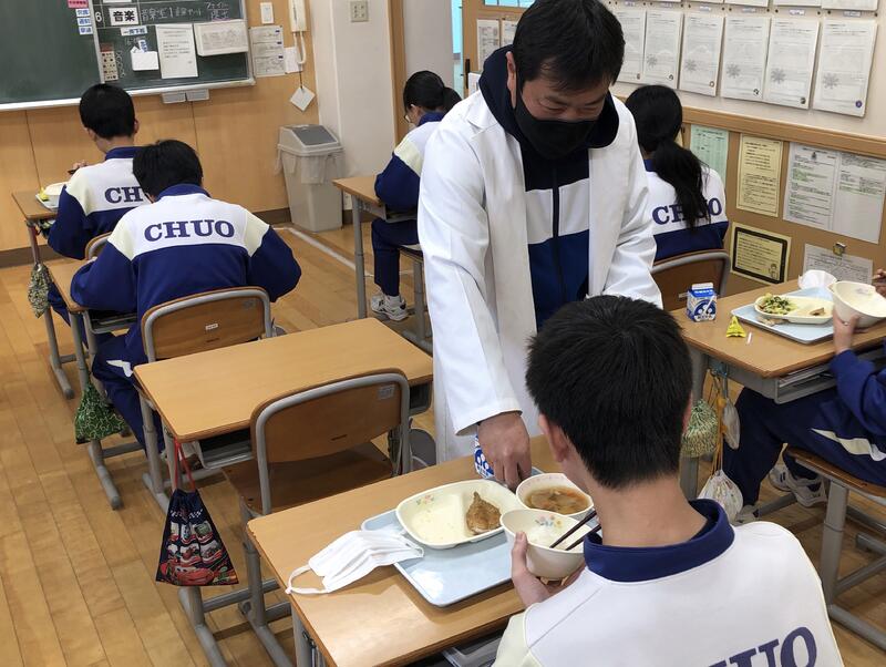 現在、中央中では新型コロナウイルス感染対策として黙食での給食の時間が続いています。それでも学校での一番の楽しみが給食だという生徒は少なくないのではないでしょうか?