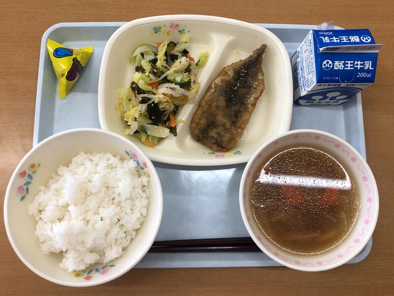 ごはん 牛乳 マスの三味焼き 大根サラダ
