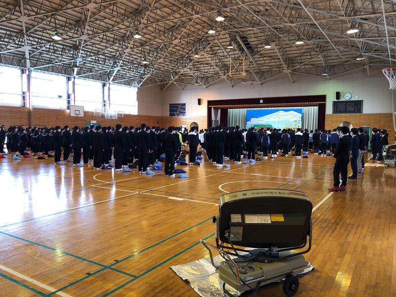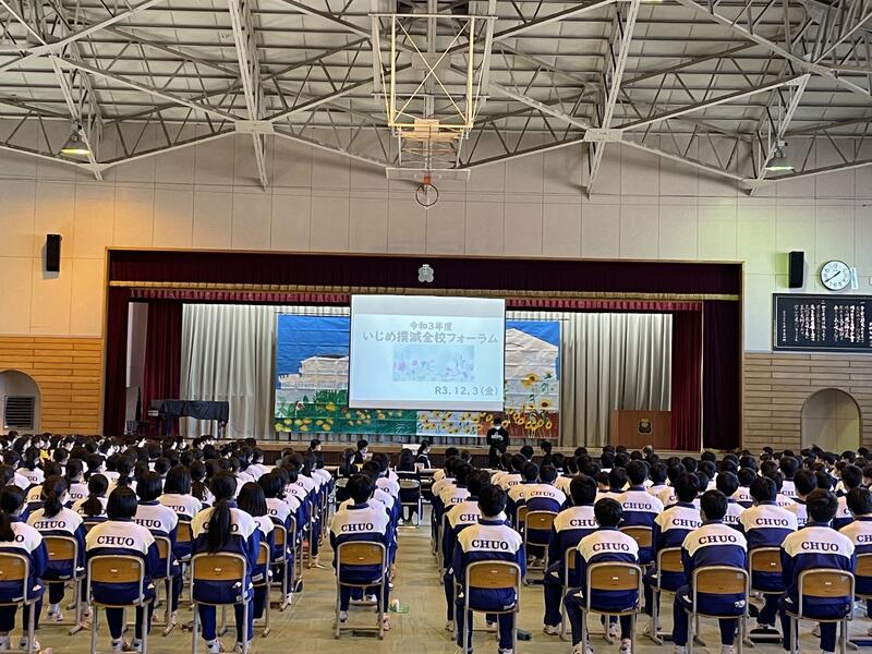 防寒着を着用して、ジェットヒーターをつけていましたが、とても気温が低く、凍えるような寒さの中で朝会が行われました。そんな中でも、元気な声で朝の挨拶をする生徒がたくさんいたり、壇上に立った生徒や先生の話を真剣に聞いていたりと、素晴らしい態度での朝会でした。どんな状況でも何事にも一生懸命取り組む姿を見て、さすが中央中生だなと朝から感心させられました!