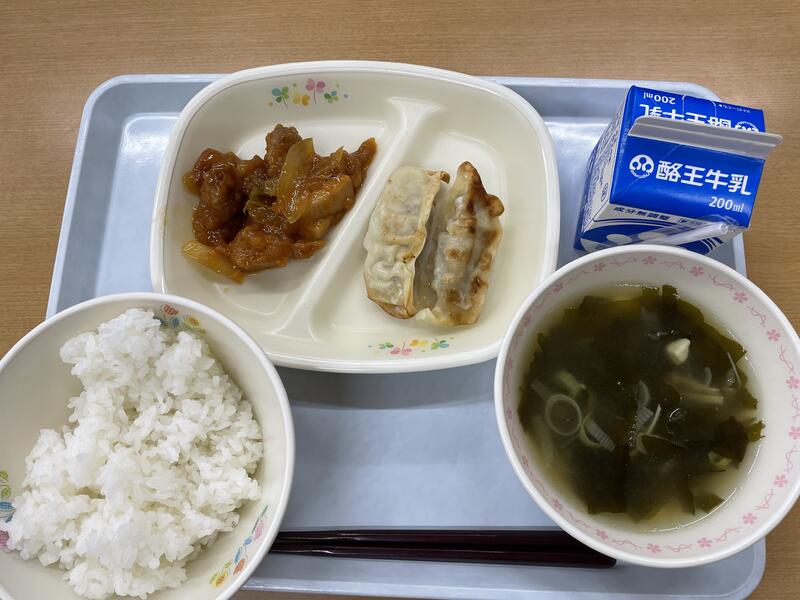 ごはん 牛乳 ぎょうざ 酢豚 わかめスープ