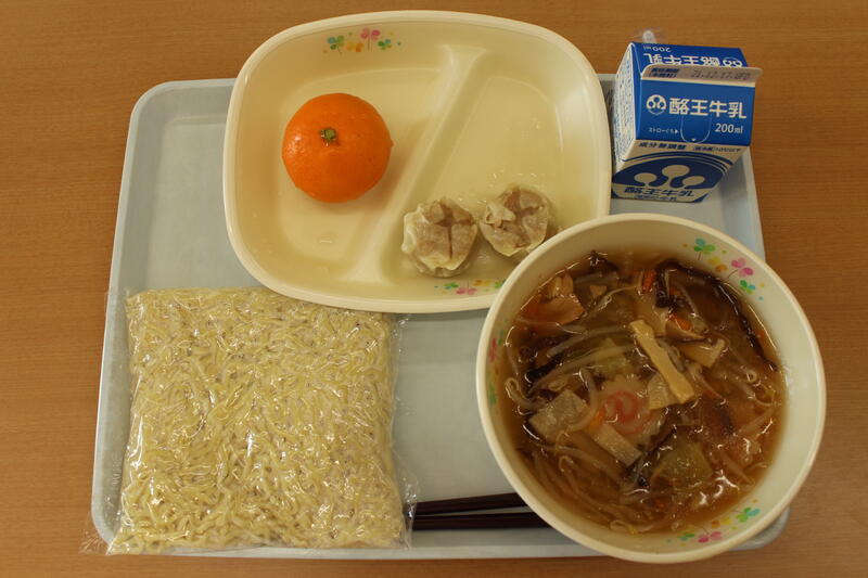 五目あんかけラーメン 牛乳 肉シューマイ みかん