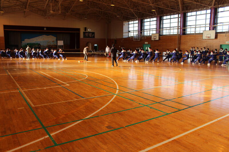 今日の午後、体育館で3年生の綱引き大会が行われました。この綱引き大会が約7ヶ月半一緒に生活してきたクラスの仲間とともに挑む最後のクラス対抗行事となりました。