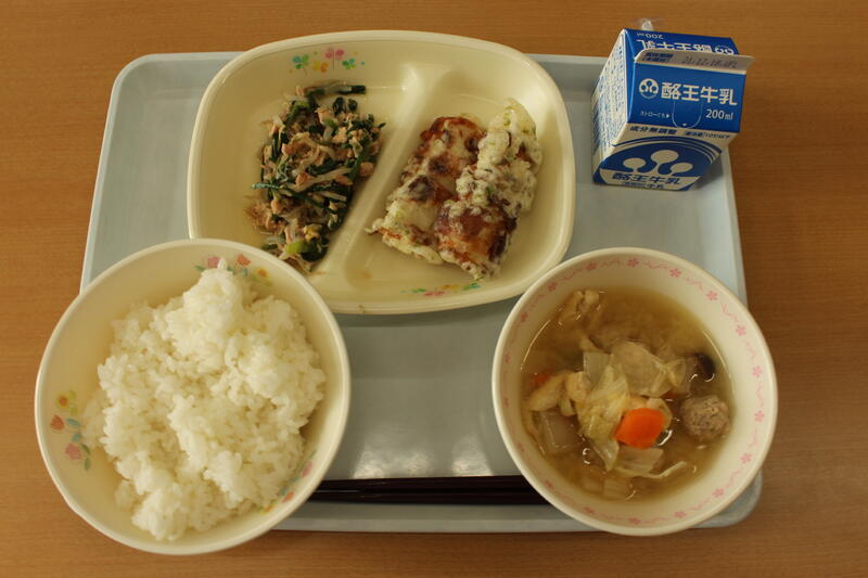 ごはん 牛乳 ちくわのいそ辺揚げ もやしとニラのツナ和え みそちゃんこ