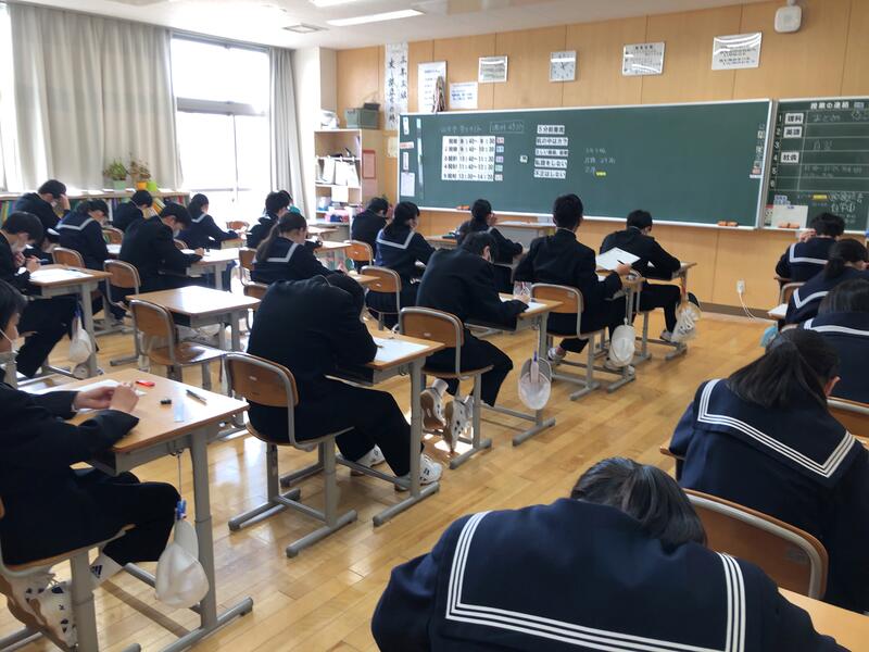 昨日は綱引き大会でクラスのためにがんばる姿が見られましたが、今日は、学力調査で自分のためにがんばる姿が見られました。2学期も終わりに近づき、面接練習もスタートしました。志望校に合格するためにも、今後行われるひとつひとつのテストにも集中して臨みましょう!3年生お疲れ様でした!!!