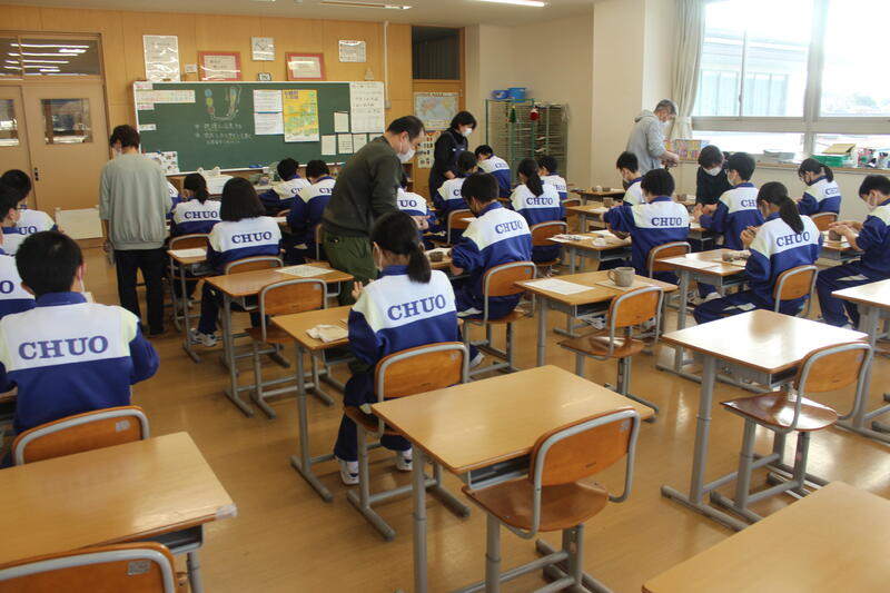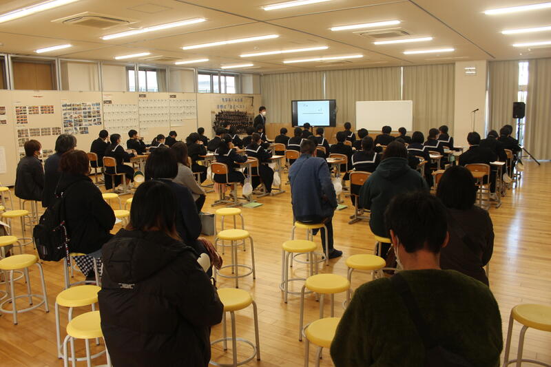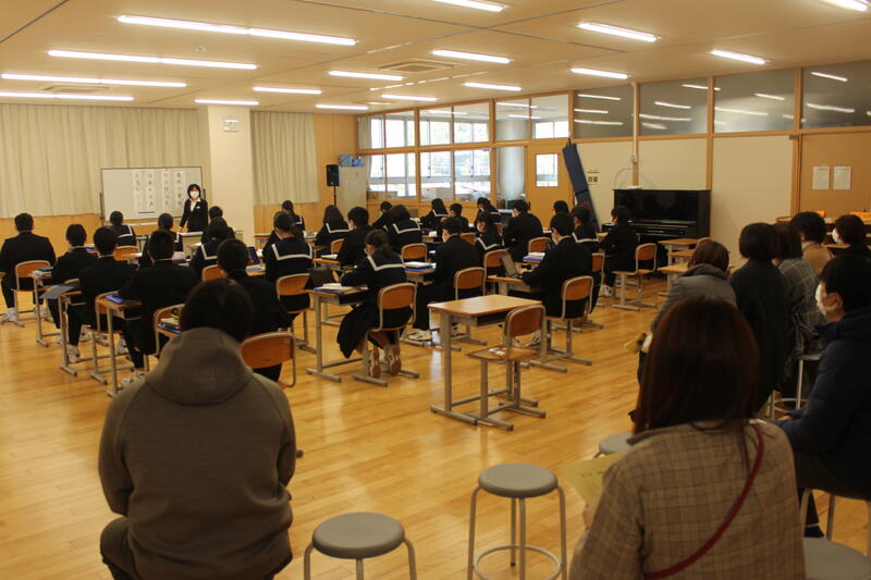 普段の教室とは違う場所で、そしていつもとは違う雰囲気での授業となり、生徒も緊張した表情でしたが、授業が進むにつれて緊張もほぐれたのか、積極的に話し合ったり、発言したりとがんばっている様子が見られました。