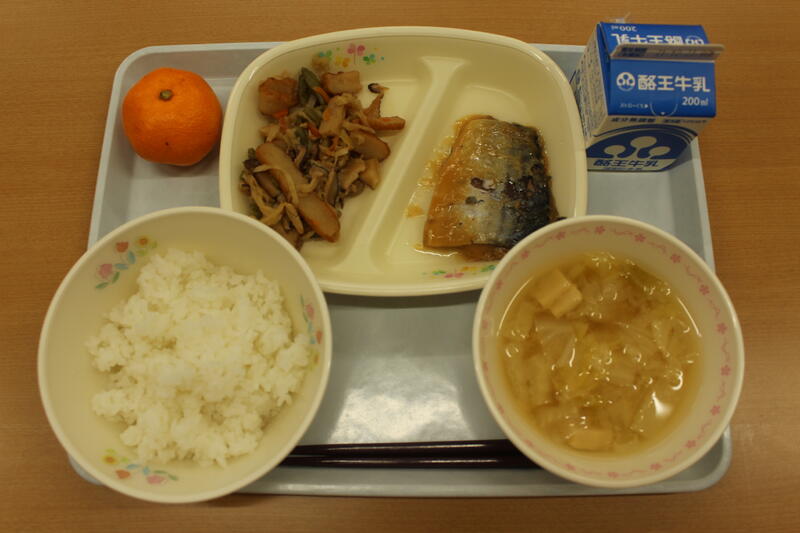 ごはん 牛乳 さばのみそ煮 切干大根の炒め物 凍み豆腐のみそ汁 みかん