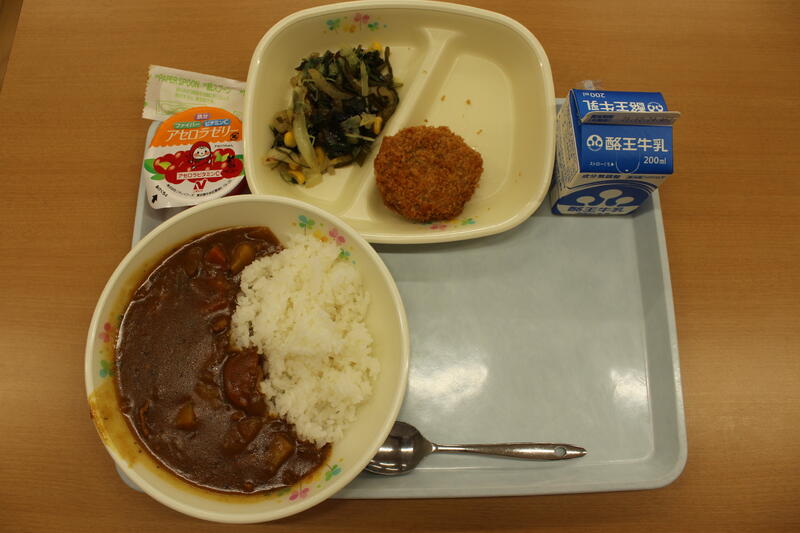 カツカレーライス 牛乳 ヒレカツ 海藻サラダ アセロラゼリー