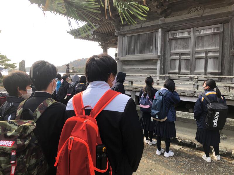 先程無事に松島に到着し、最初の見学地の瑞巌寺五大堂に着きました。