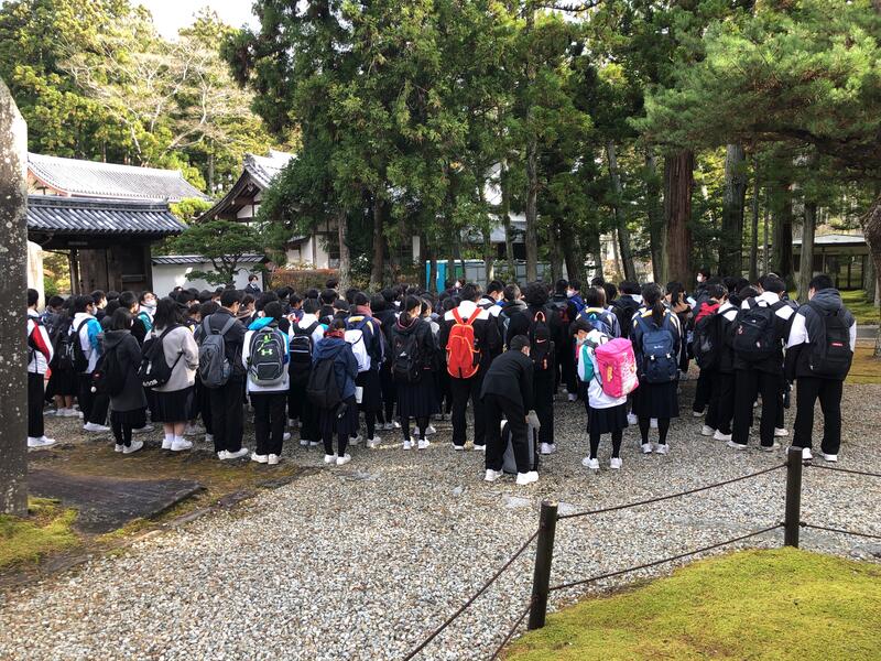 修学旅行も2日目となりました。6時半から、中央中生徒のみのビュッフェ形式での朝食でした。夜は十分な睡眠をとった生徒が多かったようで、みんな朝から元気に、もりもりと食べていました。移動や準備もスムーズで、時間通り、ホテルを8時半に出発することができました。1日目に引き続き、2日目も良いスタートです。