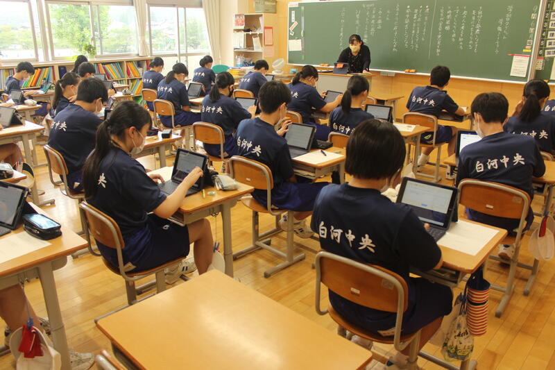 朝登校したら保管庫から自分でタブレットをとり、帰りにタブレットを戻すまで自分で1日管理します。休み時間には、授業で出された課題をタブレットを使って行う姿が見られました。タブレットを使っていくにつれて、少しずつ操作にも慣れ、すでに使いこなしている生徒たちもたくさんいます。自分たちの学力向上のためにも、有効に使い、知識を深めていきましょう!