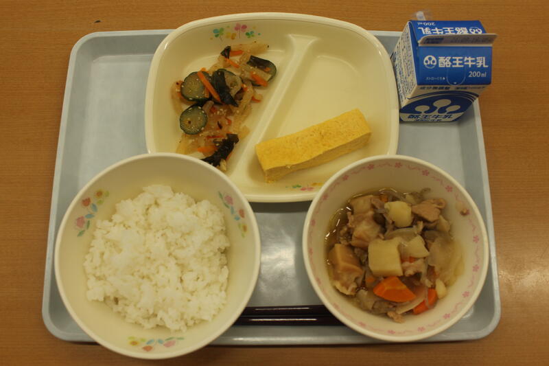 ごはん 牛乳 厚焼き玉子 大根ごまサラダ 肉じゃが