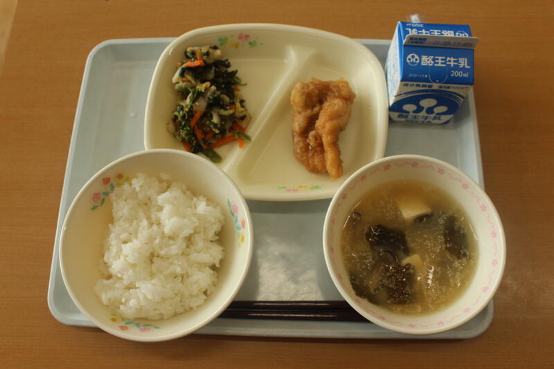給食センター手作りのかき揚げ、生徒たちにとても大人気でした!