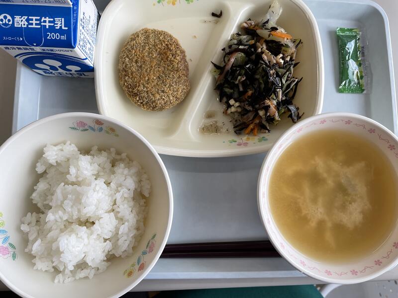 ごはん 牛乳 レバー入りチキンメンチカツ ひじきのマリネ 具だくさん汁
