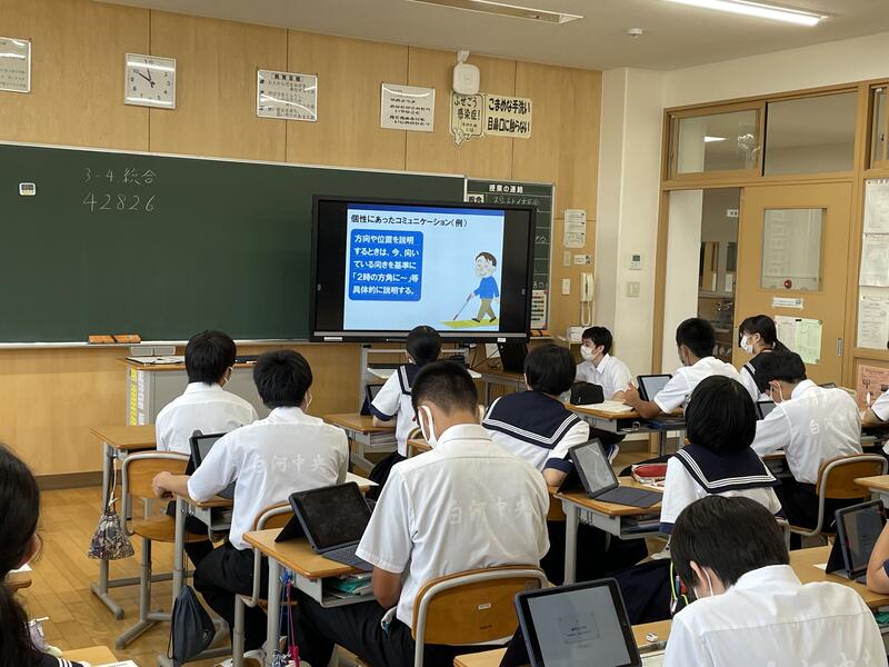 3年生の学習では、多様性と共生社会というテーマでタブレットと電子黒板を使って学習をしました。