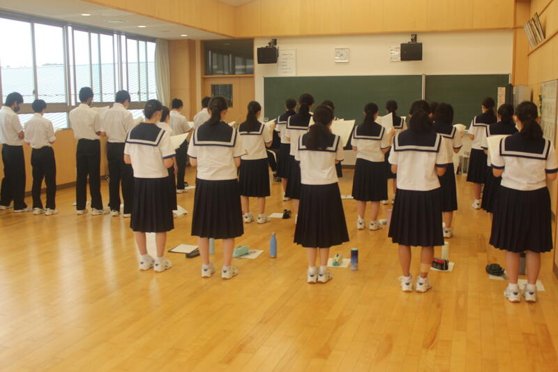 朝、生徒たちがまだ登校していない時間に3階の音楽室からキレイな歌声が一番離れている職員室まで響いています。先日結成された声楽部が毎朝早い時間に集まって練習を行っています。