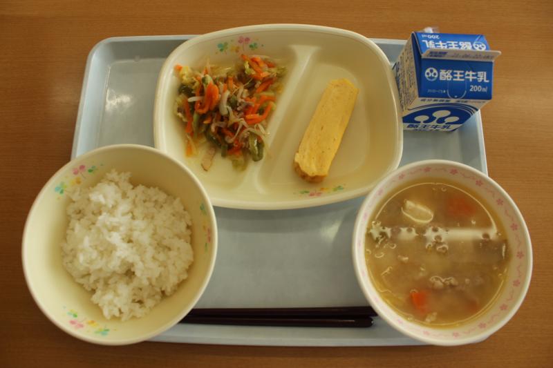 ごはん 牛乳 厚焼き玉子 野菜炒め 豚汁