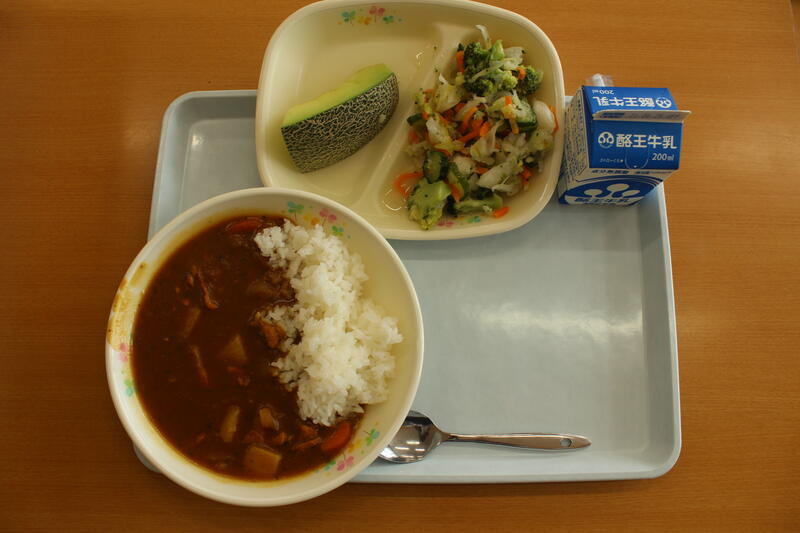 ポークカレーライス 牛乳 ブロッコリーサラダ メロン