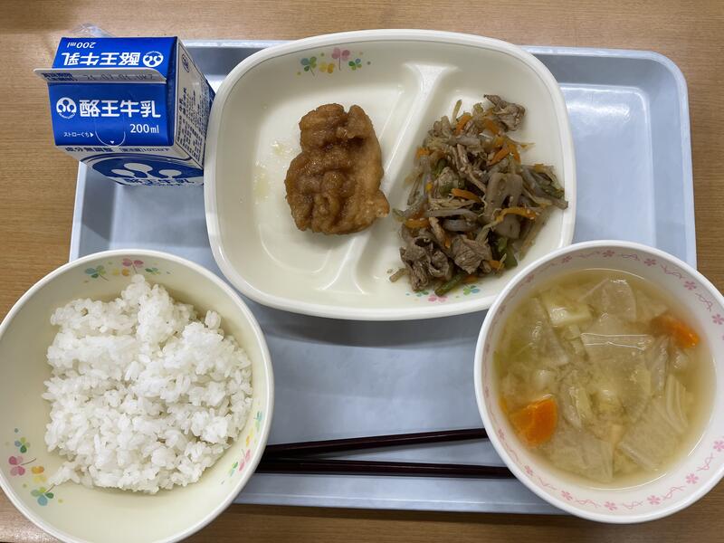 ごはん 牛乳 鶏肉のレモン漬け 五目きんぴら 具だくさん汁