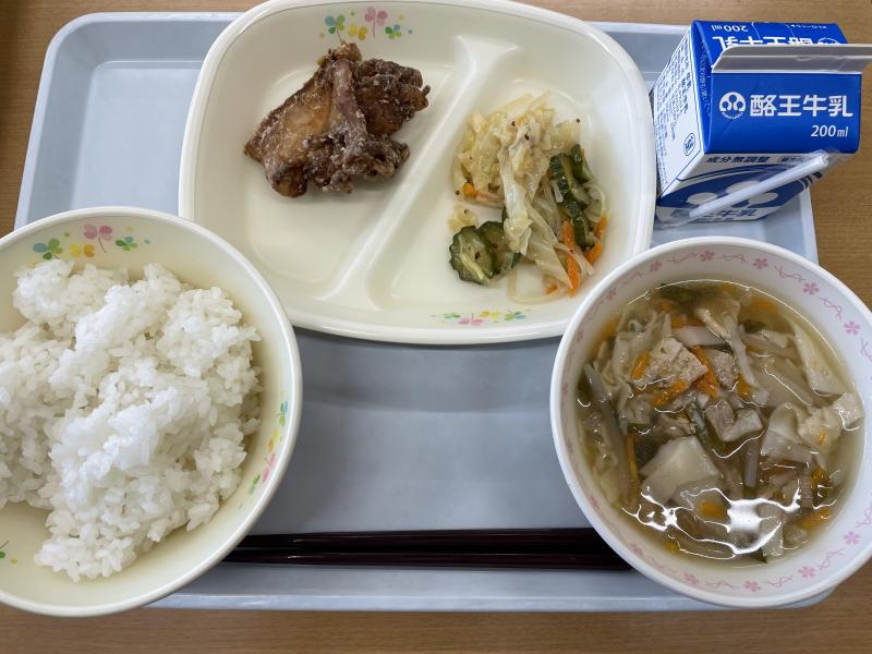 今日は鶏肉のカレー揚げが出ました。唐揚げとカレーは最高の組み合わせですね!みんな大好きなものが2つ組み合わさっていて美味しさ間違いなしでした。個人的には何個も食べたかったですね、
