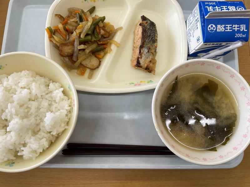ごはん 牛乳 サケのねぎみそ焼き 大根のきんぴら じゃがいものみそ汁